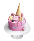 Celebra el día del amor y la amistad con este lindo pastel, lo hemos decorado con barquillos de helado y macarons. *Los chocolates pueden variar*